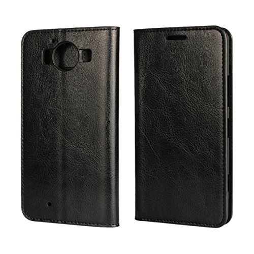 Golikef Nokia Lumia 950 ケース カバー バンパー 手帳型 高級 本革 レザー 色鮮やか レトロ な book case 型 柔らかいシリコンTPUラバーカバー スタンド機能 カード収納機能 アイフォン 手帳 スマホケース カード収納ポケット付き マグネット式 ストラップ付き スマートフォン保護ケース 両面プリントデザイン ブラック