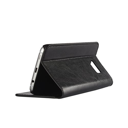 Golikef Samsung Galaxy S7 Edge ケース カバー バンパー 手帳型 高級 本革 レザー 色鮮やか レトロ な book case 型 柔らかいシリコンTPUラバーカバー スタンド機能 カード収納機能 アイフォン 手帳 スマホケース カード収納ポケット付き マグネット式 ストラップ付き スマートフォン保護ケース 両面プリントデザイン ブラック
