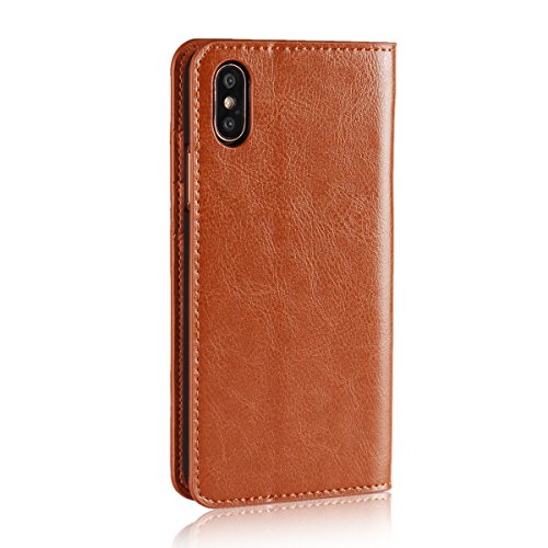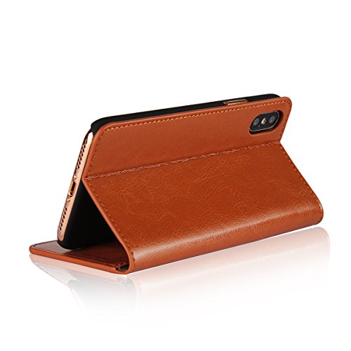 Golikef iPhone X ケース カバー バンパー 手帳型 高級 本革 レザー 色鮮やか レトロ な book case 型 柔らかいシリコンTPUラバーカバー スタンド機能 カード収納機能 アイフォン 手帳 スマホケース カード収納ポケット付き マグネット式 ストラップ付き スマートフォン保護ケース 両面プリントデザイン ライトブラウン