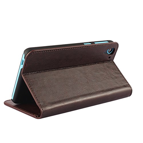 Golikef HTC Desire 826 ケース カバー バンパー 手帳型 高級 本革 レザー 色鮮やか レトロ な book case 型 柔らかいシリコンTPUラバーカバー スタンド機能 カード収納機能 アイフォン 手帳 スマホケース カード収納ポケット付き マグネット式 ストラップ付き スマートフォン保護ケース 両面プリントデザイン ダークブラウン