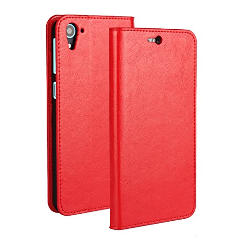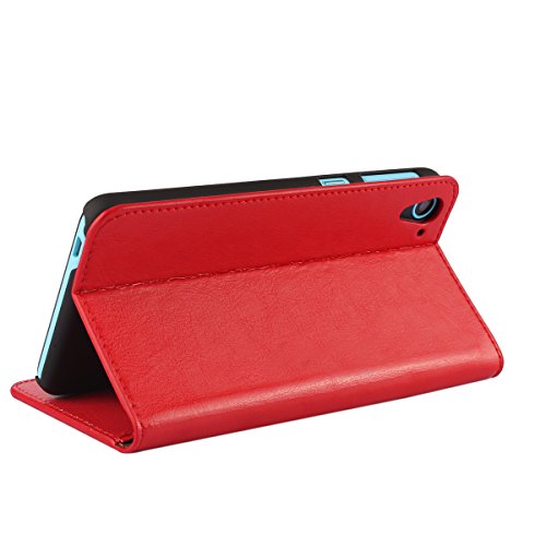 Golikef HTC Desire 826 ケース カバー バンパー 手帳型 高級 本革 レザー 色鮮やか レトロ な book case 型 柔らかいシリコンTPUラバーカバー スタンド機能 カード収納機能 アイフォン 手帳 スマホケース カード収納ポケット付き マグネット式 ストラップ付き スマートフォン保護ケース 両面プリントデザイン レッド