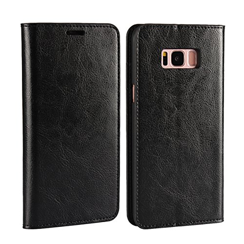 Golikef Samsung Galaxy S8 ケース カバー バンパー 手帳型 高級 本革 レザー 色鮮やか レトロ な book case 型 柔らかいシリコンTPUラバーカバー スタンド機能 カード収納機能 アイフォン 手帳 スマホケース カード収納ポケット付き マグネット式 ストラップ付き スマートフォン保護ケース 両面プリントデザイン ブラック