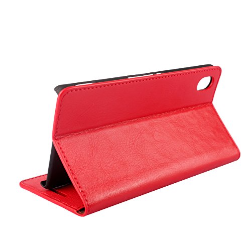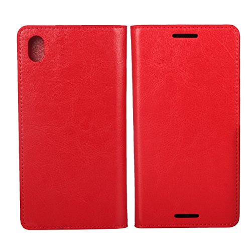 Golikef Sony Xperia M4 Aqua ケース カバー バンパー 手帳型 高級 本革 レザー 色鮮やか レトロ な book case 型 柔らかいシリコンTPUラバーカバー スタンド機能 カード収納機能 アイフォン 手帳 スマホケース カード収納ポケット付き マグネット式 ストラップ付き スマートフォン保護ケース 両面プリントデザイン レッド