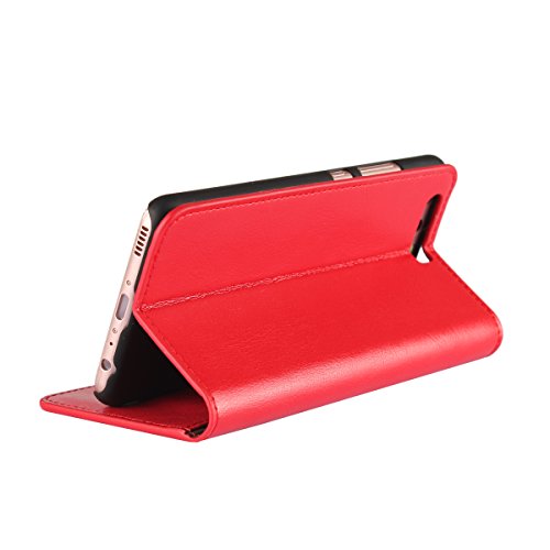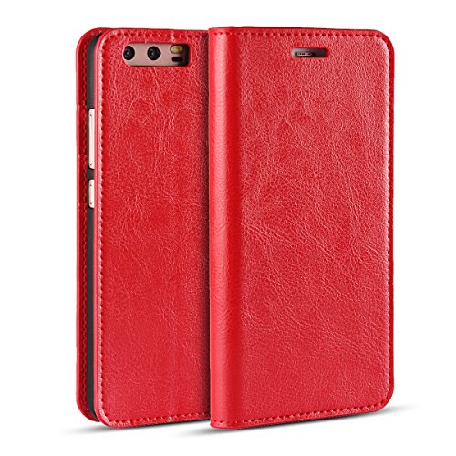 Golikef Huawei P10 Plus ケース カバー バンパー 手帳型 高級 本革 レザー 色鮮やか レトロ な book case 型 柔らかいシリコンTPUラバーカバー スタンド機能 カード収納機能 アイフォン 手帳 スマホケース カード収納ポケット付き マグネット式 ストラップ付き スマートフォン保護ケース 両面プリントデザイン レッド