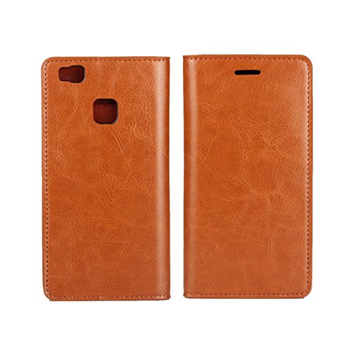 Golikef Huawei P9 Lite ケース カバー バンパー 手帳型 高級 本革 レザー 色鮮やか レトロ な book case 型 柔らかいシリコンTPUラバーカバー スタンド機能 カード収納機能 アイフォン 手帳 スマホケース カード収納ポケット付き マグネット式 ストラップ付き スマートフォン保護ケース 両面プリントデザイン ライトブラウン