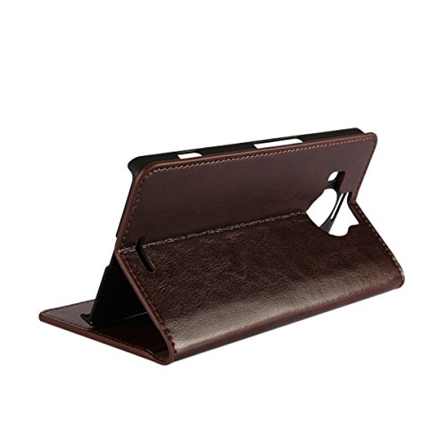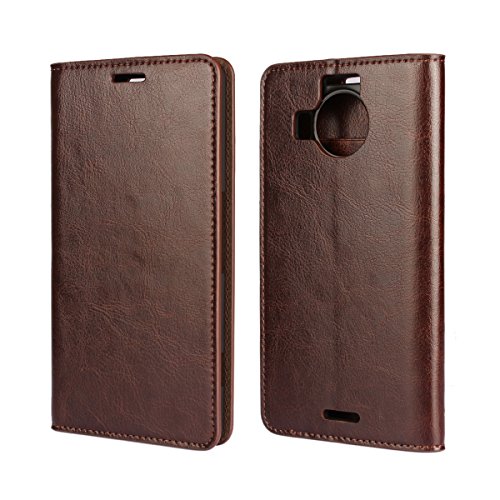 Golikef Nokia Lumia 950 XL ケース カバー バンパー 手帳型 高級 本革 レザー 色鮮やか レトロ な book case 型 柔らかいシリコンTPUラバーカバー スタンド機能 カード収納機能 アイフォン 手帳 スマホケース カード収納ポケット付き マグネット式 ストラップ付き スマートフォン保護ケース 両面プリントデザイン ダークブラウン
