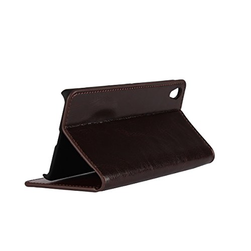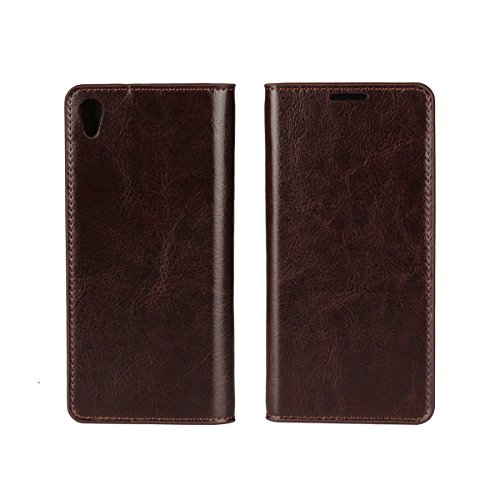 Golikef Sony Xperia XA ケース カバー バンパー 手帳型 高級 本革 レザー 色鮮やか レトロ な book case 型 柔らかいシリコンTPUラバーカバー スタンド機能 カード収納機能 アイフォン 手帳 スマホケース カード収納ポケット付き マグネット式 ストラップ付き スマートフォン保護ケース 両面プリントデザイン ダークブラウン