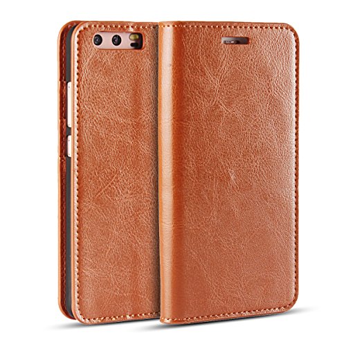 Golikef Huawei P10 Plus ケース カバー バンパー 手帳型 高級 本革 レザー 色鮮やか レトロ な book case 型 柔らかいシリコンTPUラバーカバー スタンド機能 カード収納機能 アイフォン 手帳 スマホケース カード収納ポケット付き マグネット式 ストラップ付き スマートフォン保護ケース 両面プリントデザイン ライトブラウン