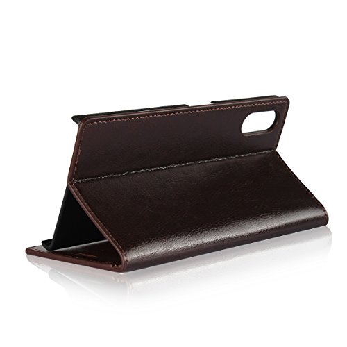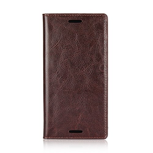 Golikef Sony Xperia XZ ケース カバー バンパー 手帳型 高級 本革 レザー 色鮮やか レトロ な book case 型 柔らかいシリコンTPUラバーカバー スタンド機能 カード収納機能 アイフォン 手帳 スマホケース カード収納ポケット付き マグネット式 ストラップ付き スマートフォン保護ケース 両面プリントデザイン ダークブラウン