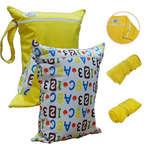 - Babyfriend Wet/Dry Diaper Bag, 2 Large Zipper Pockets with Snap Handle, Washable & Waterproof! 2 Pieces