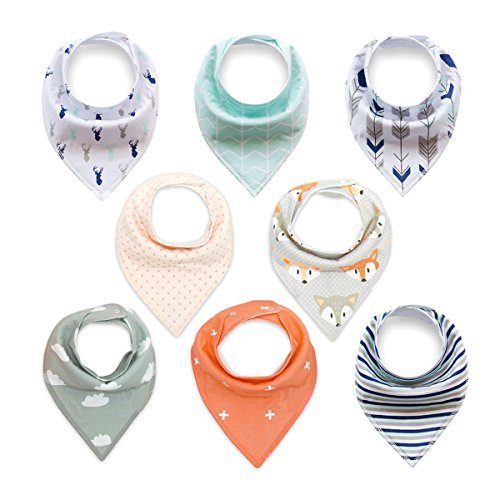 ベビーバンダナDrool Bibs、有機吸収性Cotton Bibs for Drooling and Teething Feedingギフトセット男の子女の子ベビーシャワーのギフトBurp Cloth 8パック