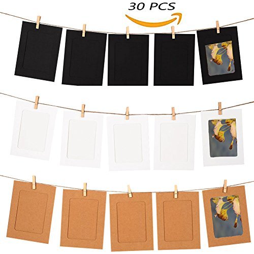 googou DIY紙フォトフレーム壁デコwith Mini Clothespinsと文字列Fits大学、ホーム、寮の部屋、オフィスの画像4 " x 6 " ( 30個)