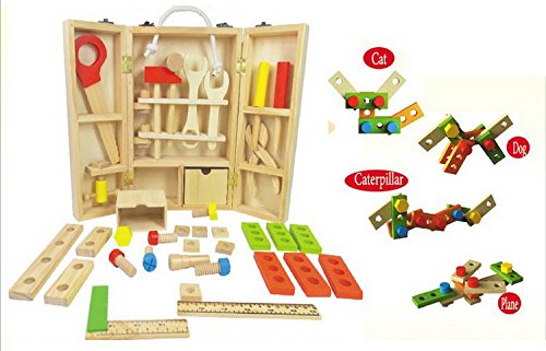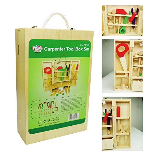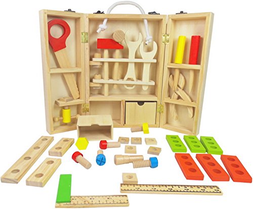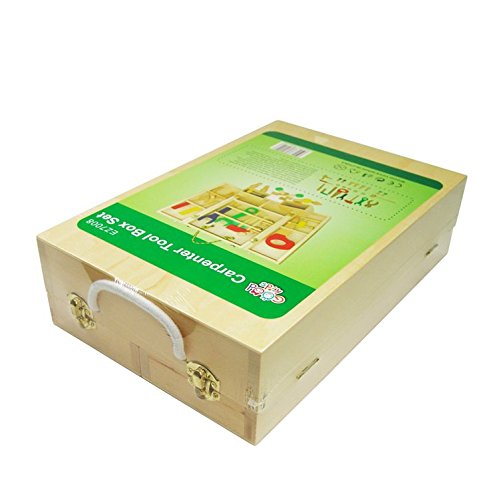 - 丈夫な木製デザインで長く遊んでも壊れません。片付けと収納が楽な頑丈工具箱付き。