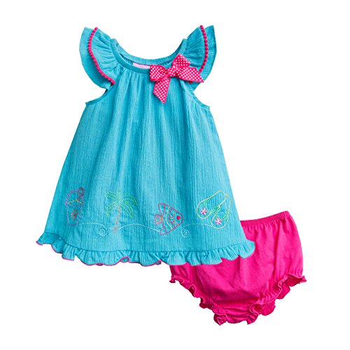 Good Lad新生児/幼児Girlsブルーガーゼサンドレスwith Tropical刺繍とパンティー カラー: ブルー