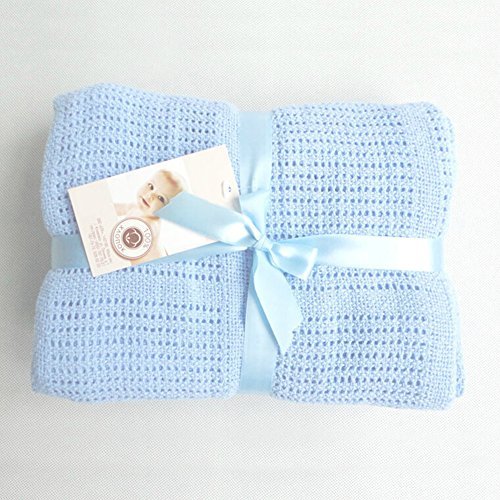 • Gooday Super Soft 100% Cotton Baby Cellular Blanket for Pram, Moses, Crib (90*120 cm, Blue)