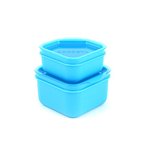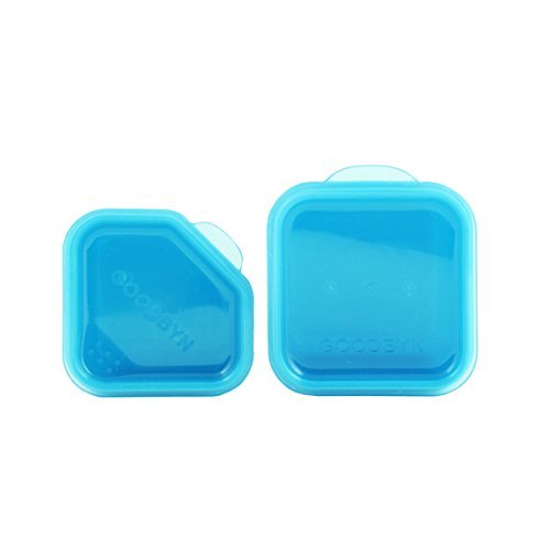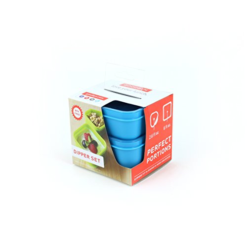 Four pieces: two lids and two container trays;Top rack dishwasher safe, FDA-approved Materials, BPA- and phthalate free, 100% Recyclable. Lids and trays made of #5 Polypropylene;Medium dipper: 0.33 cups / 77 ml / 2.6 fl oz; Large dipper: 0.75 cups / 177 ml / 6 fl oz