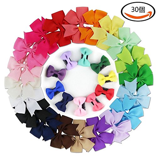Goodlucky365 30個 赤ちゃん 女の子 ヘッドバンド グログラン リボン ブティック ヘアネクタイ アリゲータークリップ 小さい 丈夫 ヘアクリップ バレッタ 用途:小さな女の子、赤ちゃんと幼児の下げ髪