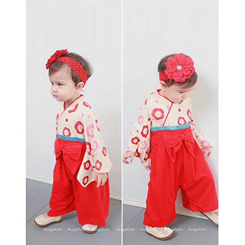 Goodparty 女の子 着物 和装 ベビー こども服 ロンパース カバーオール 入学式 発表会 結婚式 七五三 お宮参り (70, レッド)