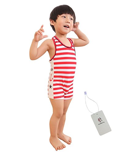 Goodparty ベビー 水着 男の子 ボーダー柄 2点セット レッド 100