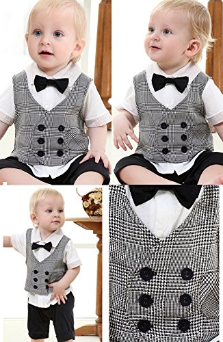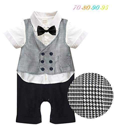 Goodparty 男の子フォーマル キッズ スーツ 子供服 カバーオール ロンパース 紳士風 蝶ネクタイ 半袖 百日祝い 出産祝い 記念日 七五三 (70#(0~6ヶ月))