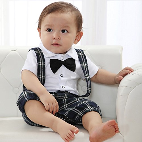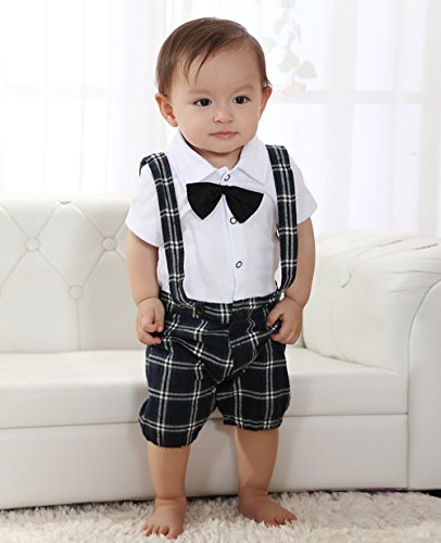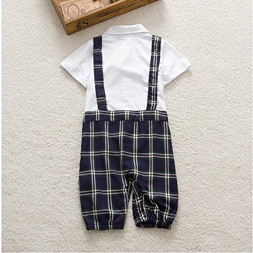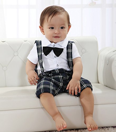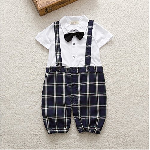 Goodparty ベビー カバーオール 男の子ロンパース 蝶ネクタイ付き サスペンダーズボン フォーマル 半袖 (80cm)