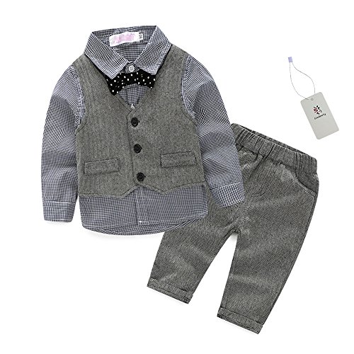 Goodparty ベビーフォーマル 子供服スーツ 蝶ネクタイ付き カバーオール 入園式 結婚式 七五三 4点セット(90cm)