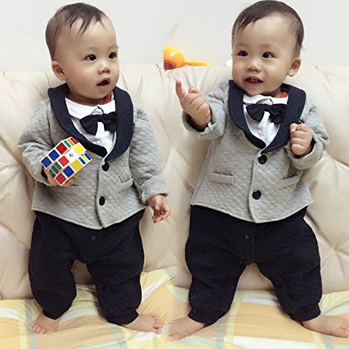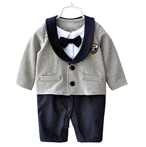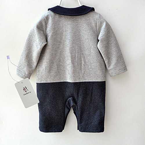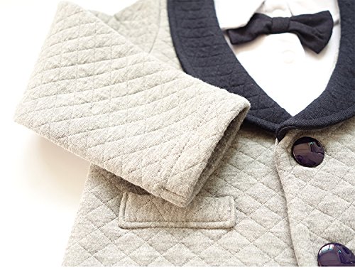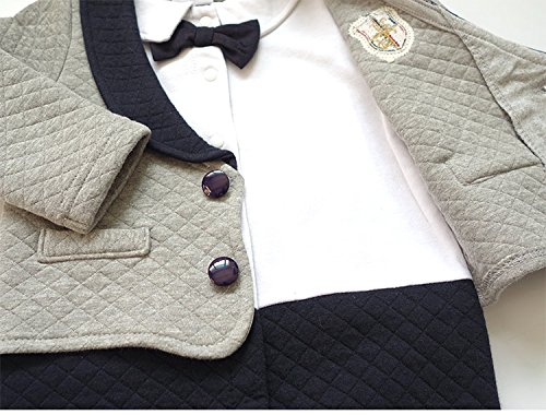 Goodparty ベビー フォーマル スーツ ロンパース 蝶ネクタイ付き お宮参り 結婚式 七五三 カバーオール (70cm, グレー)