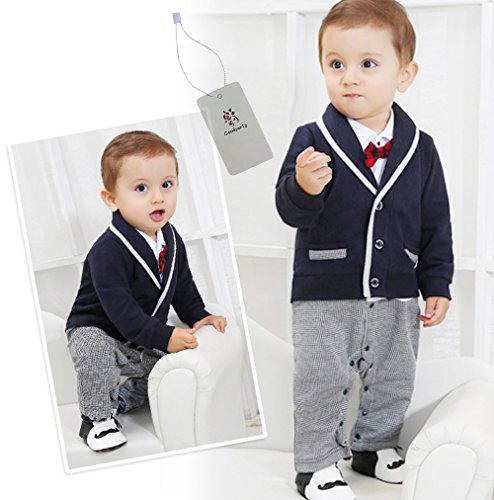 Goodparty ベビー フォーマル スーツ ロンパース 蝶ネクタイ付き お宮参り 結婚式 七五三 カバーオール (60cm, コン)