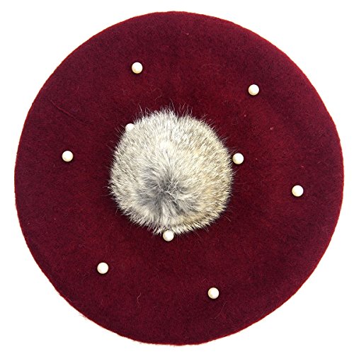 GoodsLand 【全6カラー】 子供用 ベレー帽 キャップ ビーズ ファー キッズ ジュニア ボーイズ ガールズ 男の子 女の子 防寒 おしゃれ かわいい 秋 冬 フリーサイズ (ワインレッド) GD-BERET-WRD
