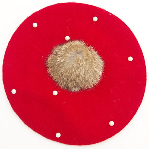 GoodsLand 【全6カラー】 子供用 ベレー帽 キャップ ビーズ ファー キッズ ジュニア ボーイズ ガールズ 男の子 女の子 防寒 おしゃれ かわいい 秋 冬 フリーサイズ (レッド) GD-BERET-RD