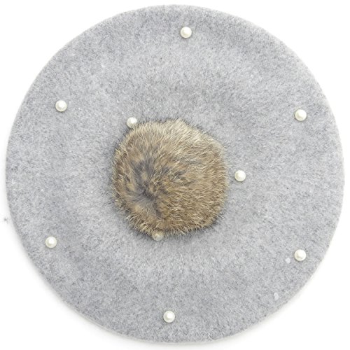 GoodsLand 【全6カラー】 子供用 ベレー帽 キャップ ビーズ ファー キッズ ジュニア ボーイズ ガールズ 男の子 女の子 防寒 おしゃれ かわいい 秋 冬 フリーサイズ (グレー) GD-BERET-GY