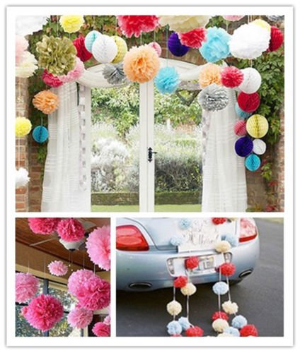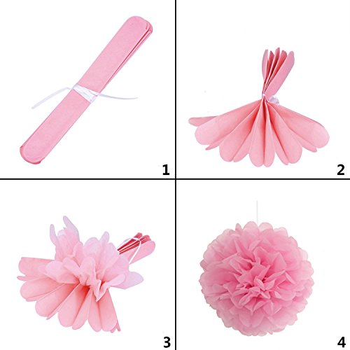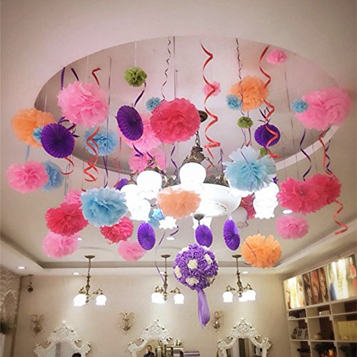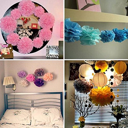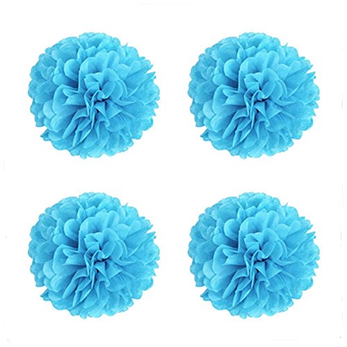 ペーパーポンポン 紙花 ティッシュペーパーポンポンプスフラワーボール誕生日結婚式パーティーベビーシャワーデコレーション,5個 - (20 CM, ブルー)