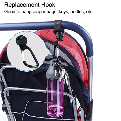 - おむつバッグや食料品を吊り下げために交換用フック付き。