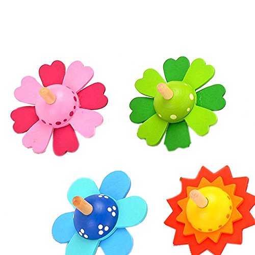 goolsky 4pcs木製Spinning Top花タイプ木製ジャイロカラフルな回転ジャイロスコープスピントップToy for Kids