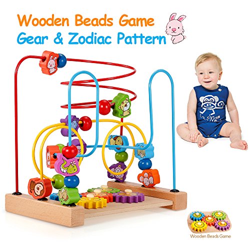 goolsky Multipurposeクラシック木製ビーズGame Gear and Zodiacパターンアクティビティキューブ教育木製おもちゃfor Kids