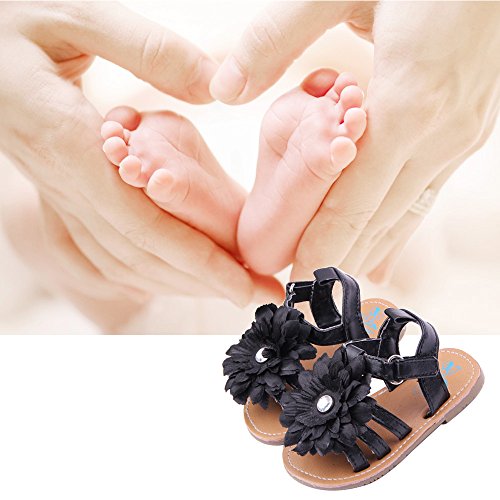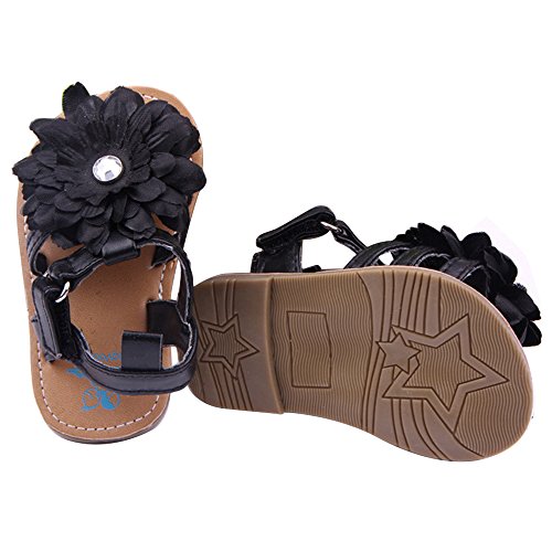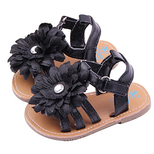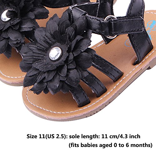 ゴシレ Gosear 夏 乳児の赤ちゃん ベビー 女 サンダルシューズ 大輪の花 飾りシャイニーラインストーン サンダルシューズ 合う 0ヶ月から6ヶ月の赤ちゃん 黑色 サイズ11
