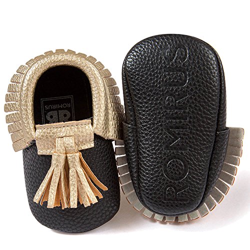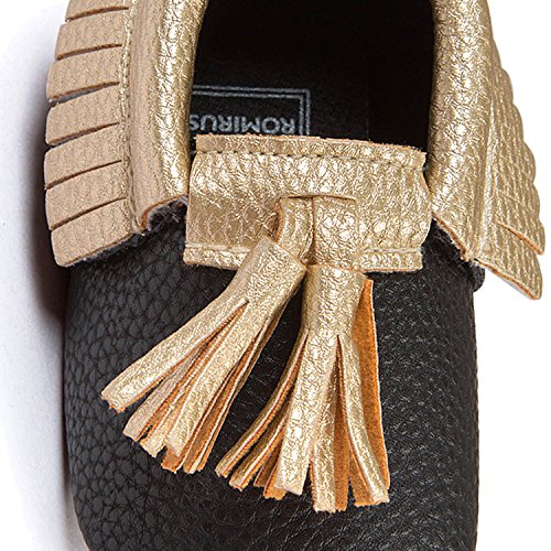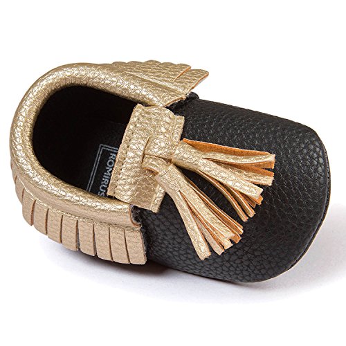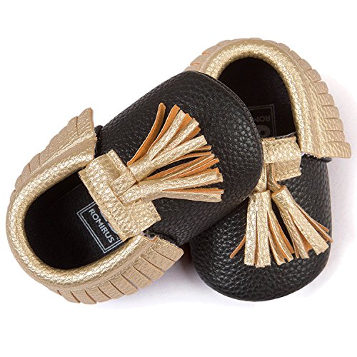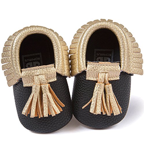 ゴシレ Gosear かわいい タッセルスタイル ソフトソール 乳児の赤ちゃん ベビー女靴 シューズ 合う 6ヶ月から12ヶ月の赤ちゃん 黑色とゴールデン サイズ12