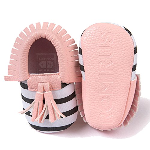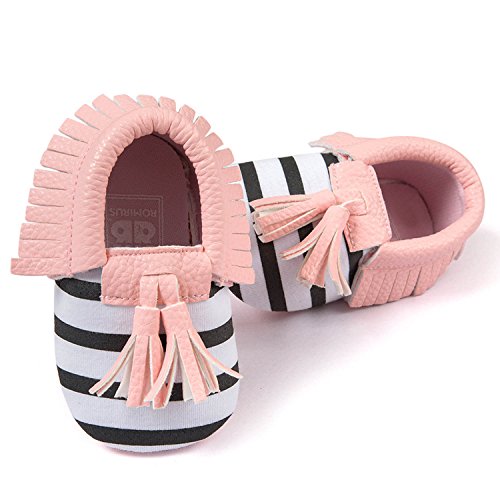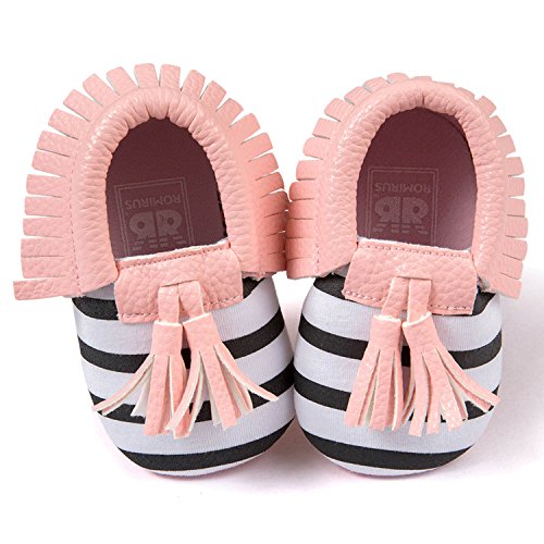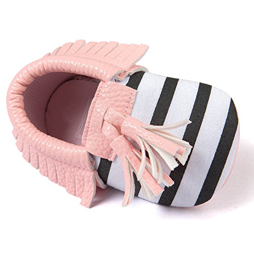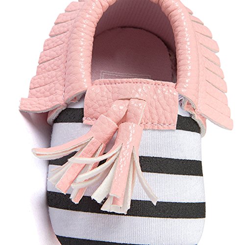 ゴシレ Gosear かわいい タッセルスタイル コットンシューアッパー 乳児の赤ちゃん ベビー女靴 シューズ 合う 12ヶ月から18ヶ月の赤ちゃん 黒と白のストライプ サイズ13