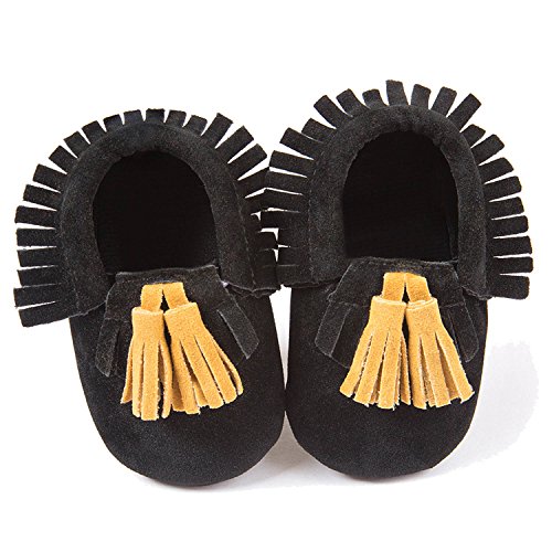 ゴシレ Gosear かわいい タッセルスタイル マットフランネルシューアッパー 乳児の赤ちゃん ベビー女靴 シューズ 合う 0ヶ月から6ヶ月の赤ちゃん 黑色 サイズ11