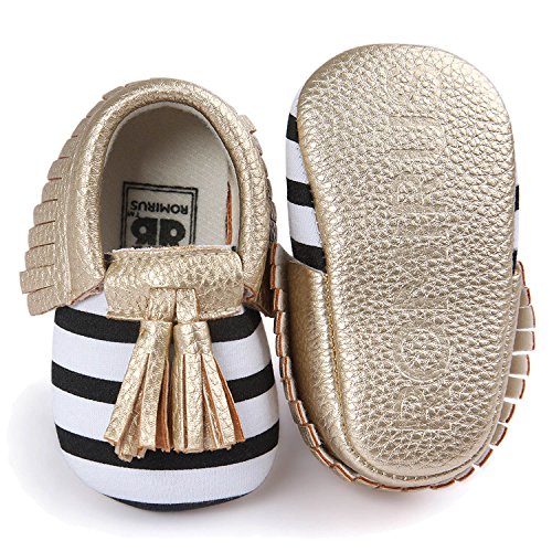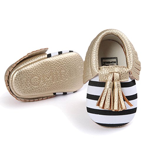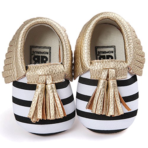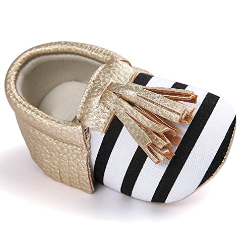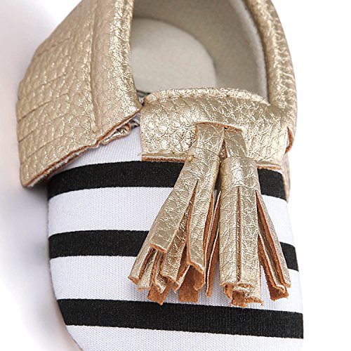 ゴシレ Gosear かわいい タッセルスタイル コットンシューアッパー 乳児の赤ちゃん ベビー女靴 シューズ 合う 12ヶ月から18ヶ月の赤ちゃん 黒と白のストライプとゴールデン サイズ13