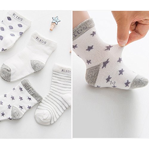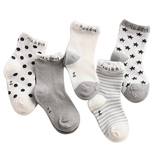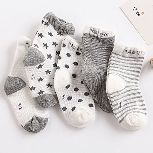 ゴシレ Gosear 5ペアファッションかわいいカワイイメッシュコットン薄いクルーソックス子供子供男の子女の子グレー1-3 年