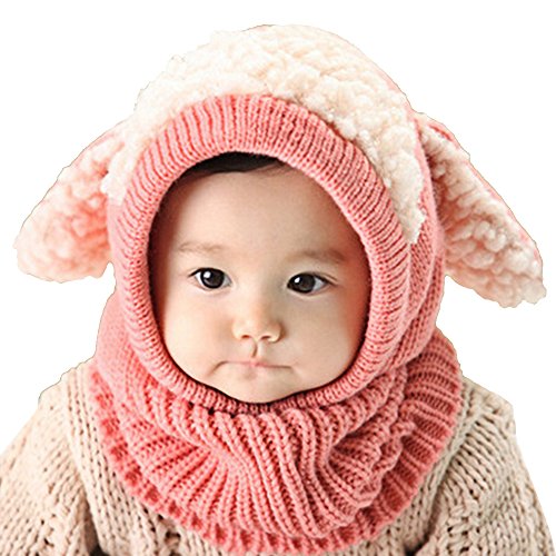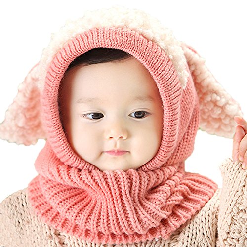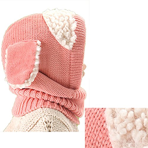 ゴシレ Gosear ベビー 赤ちゃん 冬用 防寒 ニット帽子 子供 編みキャップ かわいい ウサギの耳 ピンク