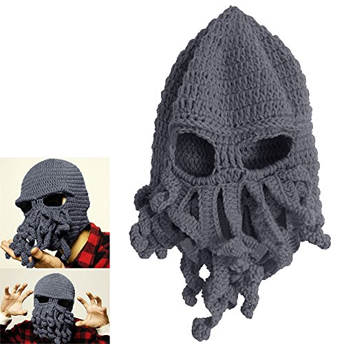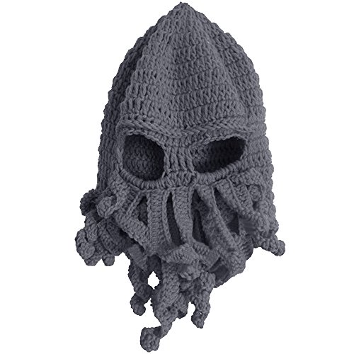 ゴシレ Gosear ユニセックス 子供 目新しさ 繊維 冬 編み物 フェイス マスク ニットひげイカ帽子 キャップ ため 3-8 年古い子供 グレー色