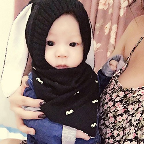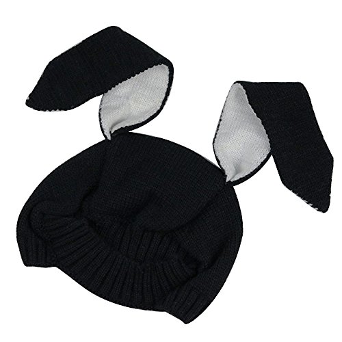 ゴシレ Gosear ベビー 赤ちゃん 冬用 防寒 ニット帽子 子供 編みキャップ かわいい ウサギの耳 黑色