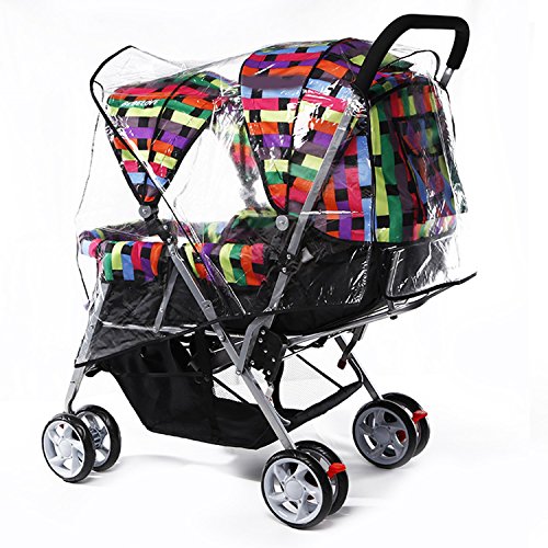 - ❥ 普遍的な PVC 二重双子前後に赤ちゃんベビーカー乳母車バギー透明防雨カバー雨陰