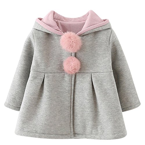 Goshang キッズ コート アウター ジャケット 子供服 ベビー服 女の子 長袖 防寒 ウサギの耳 キュート ポンポン付き フード付き