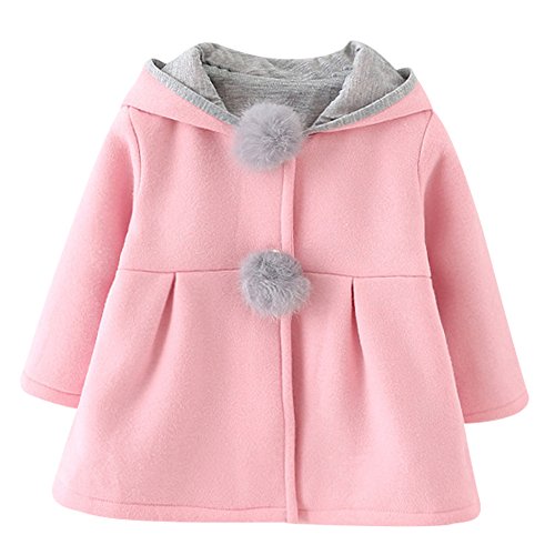 Goshang キッズ コート アウター ジャケット 子供服 ベビー服 女の子 長袖 防寒 ウサギの耳 キュート ポンポン付き フード付き