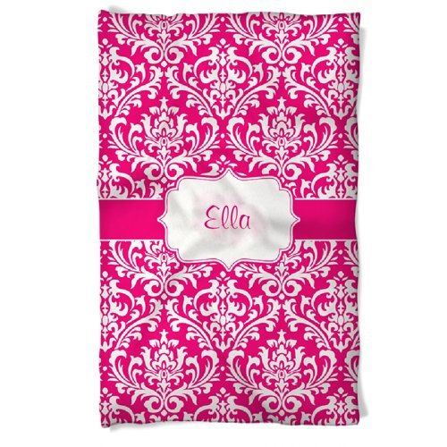 aBaby Personalized Damask Fleece Blanket Fuchsia Name Ella