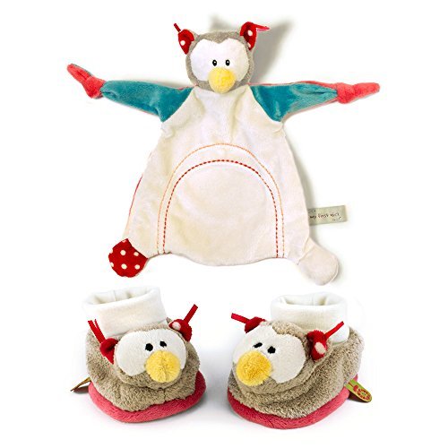 My First Nici Comforter Plush Owl Blanket and Rattling Baby Booties Set