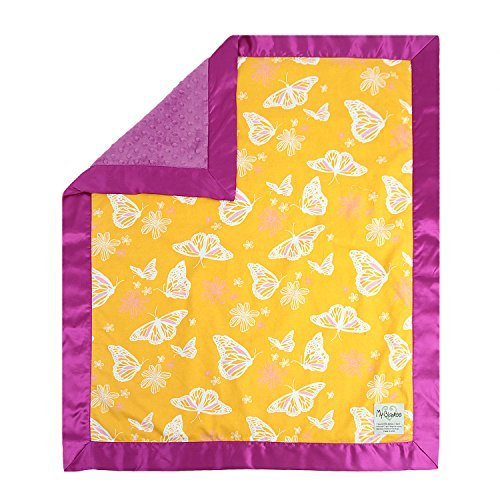 My Blankee Butterfly Yellow Cotton Blanket with Minky Dot Magenta 30 x 35 [並行輸入品]